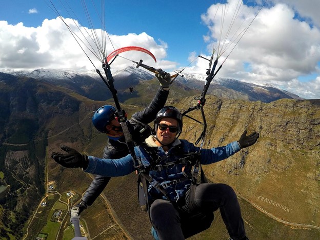 Winelands Tandem Paragliding experiences are accessible to people of all ages and physical ability. You need no previous experience to fly with one of our Tandem Flight Instructors and we provide all the paragliding gear which includes a harness and a helmet.